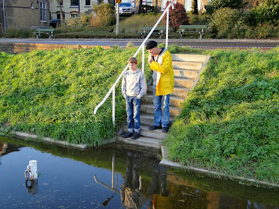 Willem-Jan en Jochem komen ook even kijken bij het hoge water, we kunnen alleen maar zwaaien,
